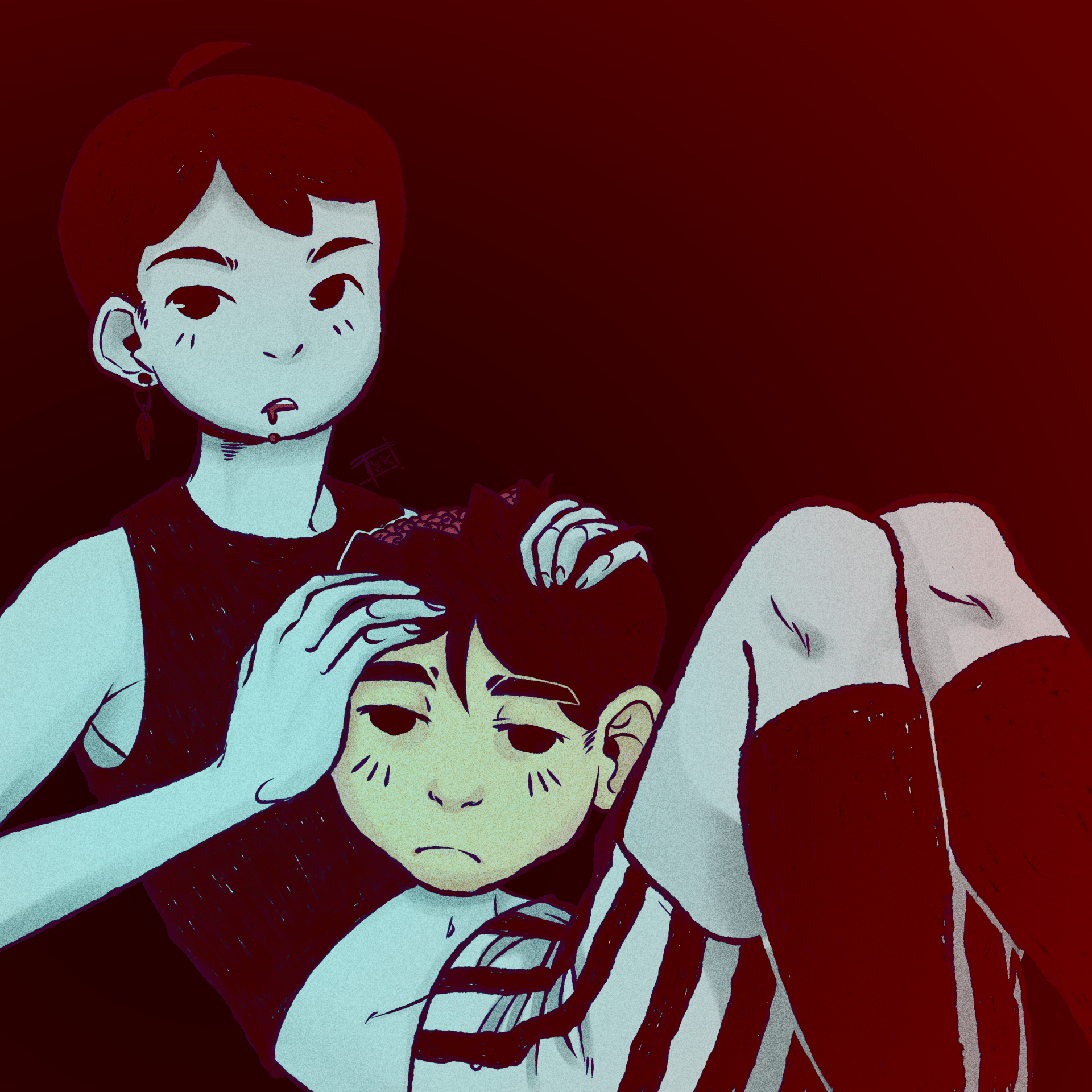 Technically OMORI Spoilers but- Don't mind it really Fan art of Omori and Sunny in a specific moment of the game This is kinda old art but still love how it looks ^^