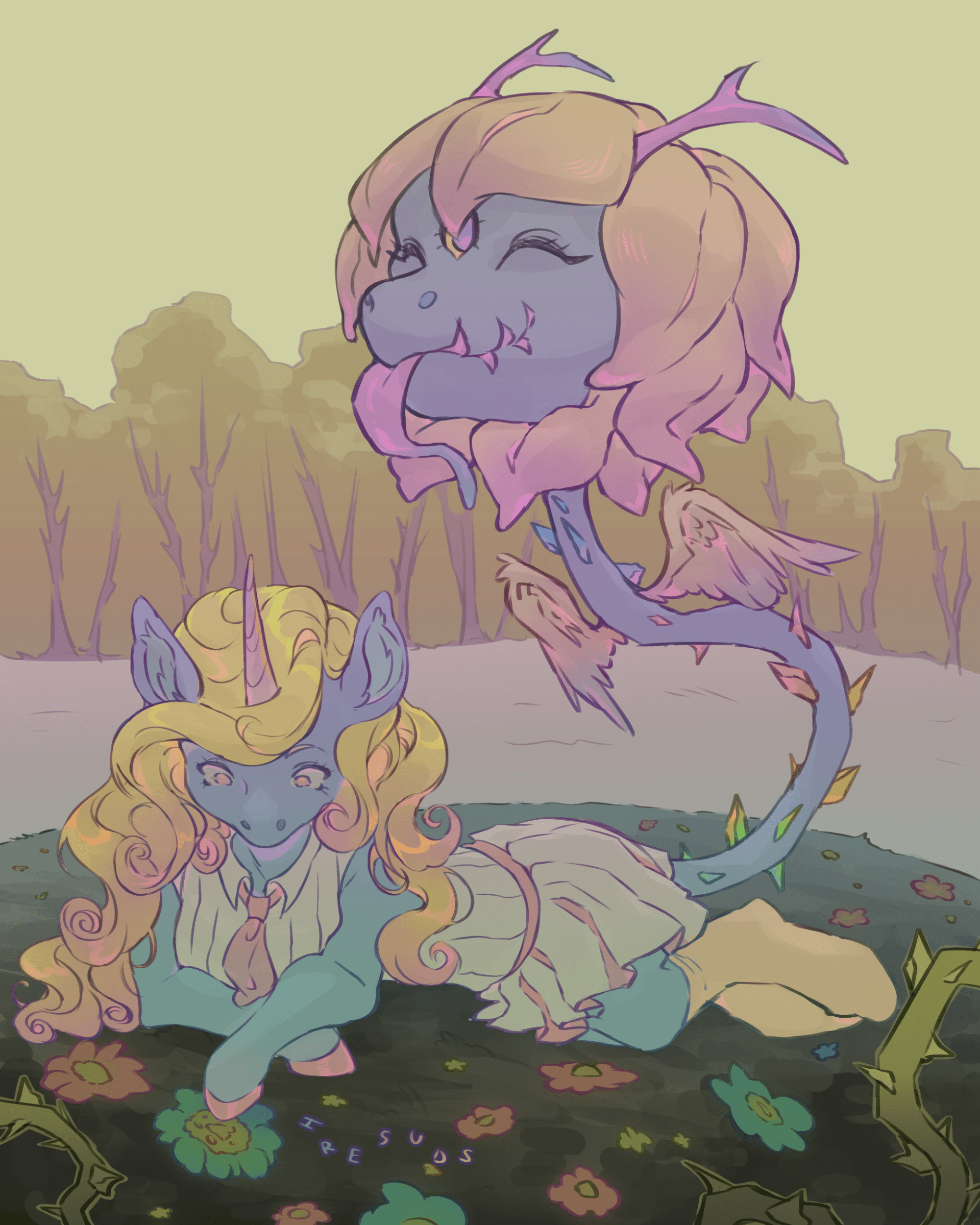 🩷🌼🩵 ~ Drew to adopt this char. The species is inactive now, so I'll make an alt design too. - Design by Ame-Kumo on DA: deviantart.com/ame-kumo/art/735617489 - Primal plant ponies are a closed species by Glitternautt & axolotlshy on DA - Species Info: glitterring.deviantart.com/journal/591058442