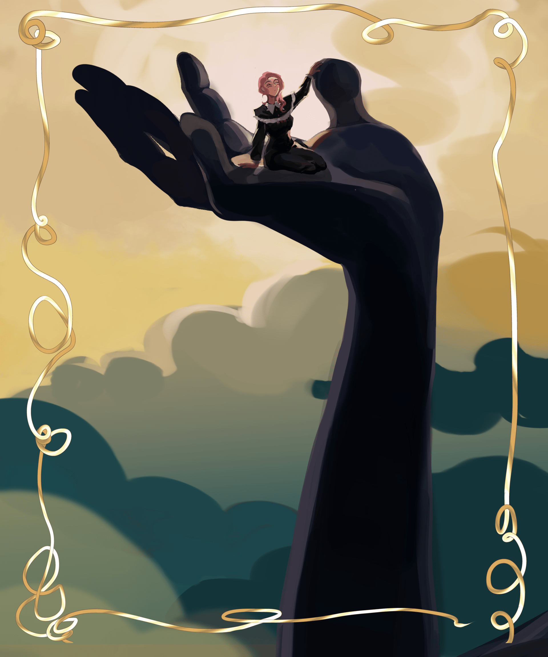 Drawing based on the legend from my comic "Sun Eater". Fantasy apocalypse, a huge blue monster descended on the world and only in this legend is the only clue to salvation.