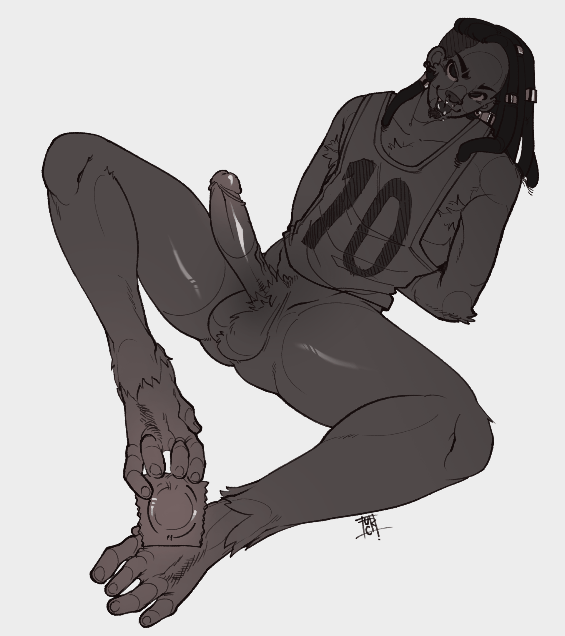 A NSFW Study for one of my furry characters Teo (Leo) He's very skilled with his feet, so you better be prepared for that musky hairy feet geeting you worked up Also example for flat color with slighlty shadows artwork~