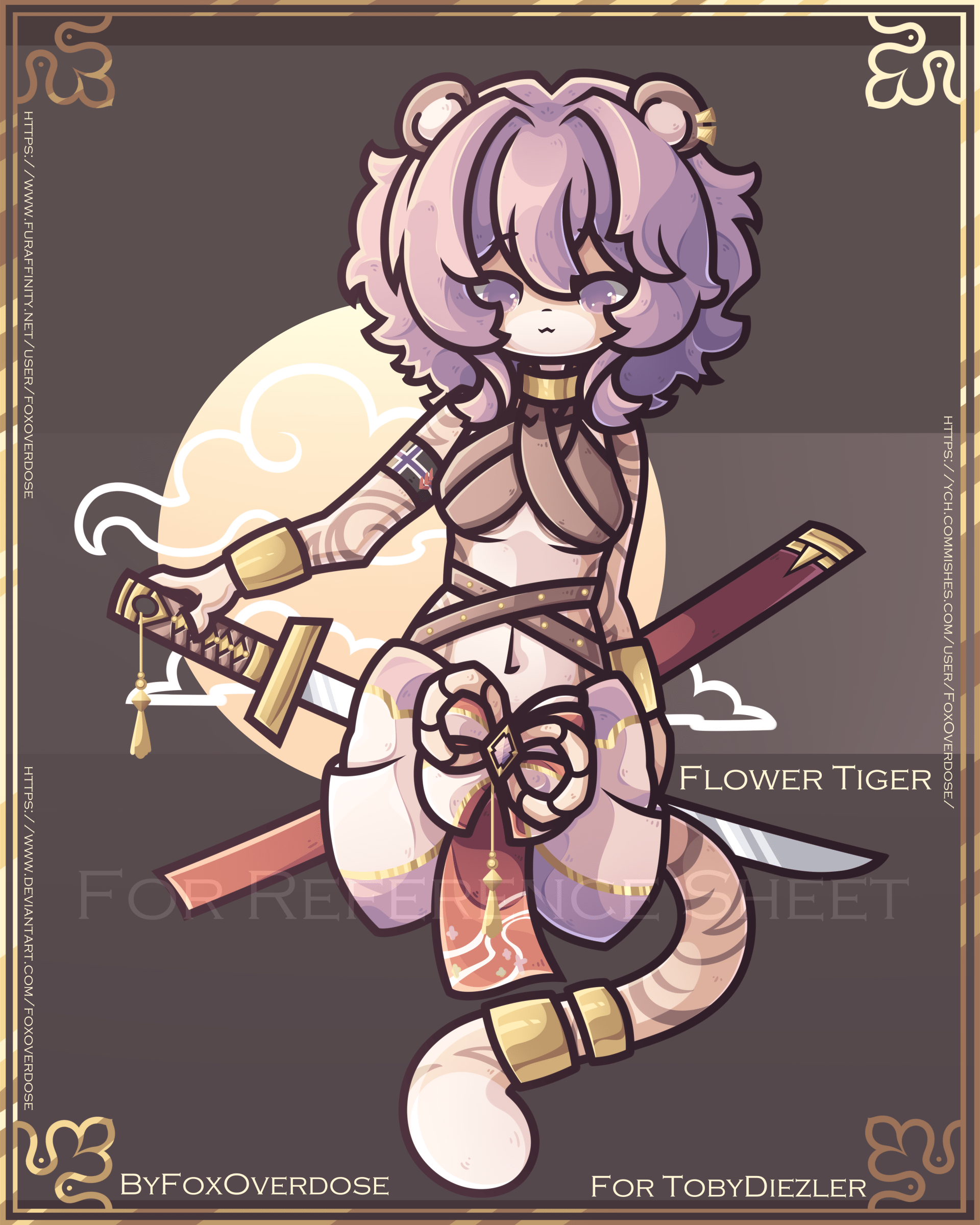 For Reference Sheet for TobyDiezler Full Render Other materials: Emotional references: https://portfolio.commishes.com/upload/show/1MTKC/ https://portfolio.commishes.com/upload/show/1MTKF/ Front view: https://portfolio.commishes.com/upload/show/1MTKE/ Back view: https://portfolio.commishes.com/upload/show/1MTK5/ Pattern reference: https://portfolio.commishes.com/upload/show/1MTKB/ https://portfolio.commishes.com/upload/show/1MTKG/ Flower Katana Reference: https://portfolio.commishes.com/upload/show/1MTK8/ https://portfolio.commishes.com/upload/show/1MTKA/ Additional material: https://portfolio.commishes.com/upload/show/1MTK6/ Reference Sheet: https://portfolio.commishes.com/upload/show/1MTKJ/ Color reference: https://portfolio.commishes.com/upload/show/1MTKI/ Original art: https://portfolio.commishes.com/upload/show/1I6U5/