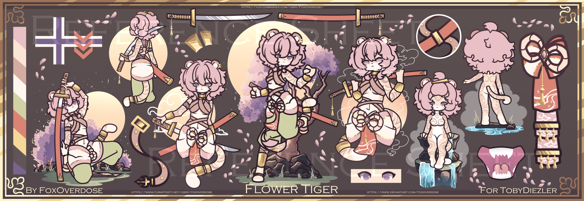 For Reference Sheet for TobyDiezler Full Render Other materials: Emotional references: https://portfolio.commishes.com/upload/show/1MTKC/ https://portfolio.commishes.com/upload/show/1MTKD/ https://portfolio.commishes.com/upload/show/1MTKF/ Front view: https://portfolio.commishes.com/upload/show/1MTKE/ Back view: https://portfolio.commishes.com/upload/show/1MTK5/ Pattern reference: https://portfolio.commishes.com/upload/show/1MTKB/ https://portfolio.commishes.com/upload/show/1MTKG/ Flower Katana Reference: https://portfolio.commishes.com/upload/show/1MTK8/ https://portfolio.commishes.com/upload/show/1MTKA/ Additional material: https://portfolio.commishes.com/upload/show/1MTK6/ Reference Sheet: https://portfolio.commishes.com/upload/show/1MTKJ/ Original art: https://portfolio.commishes.com/upload/show/1I6U5/