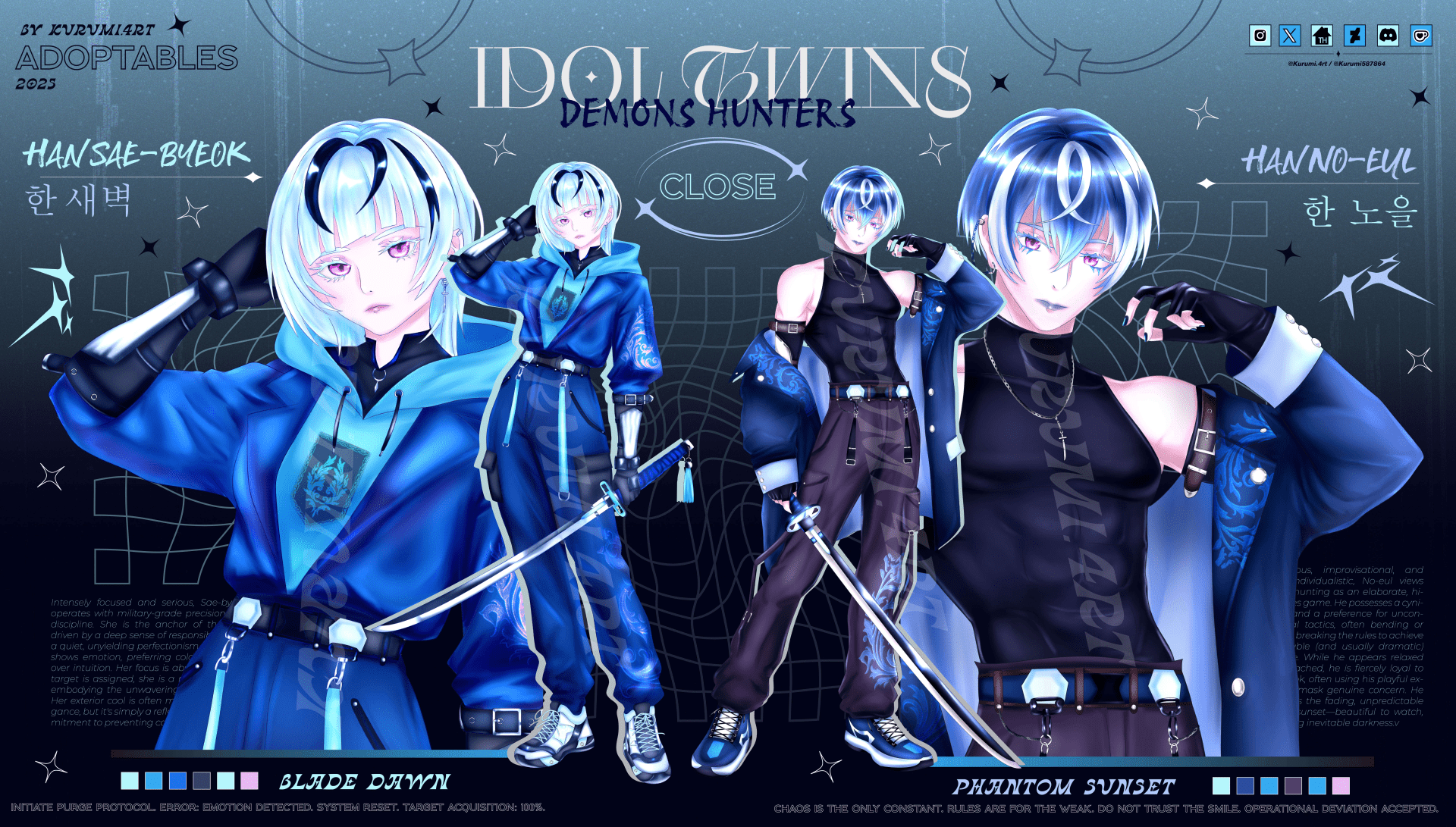──── ⋅ ⋅ ─ ㆍ✦ 𖥔 ✦ㆍ ─ ⋅ ⋅ ──── Hello, dears! Excited to show this new pair of adoptables! I thought of updating designs and improve more in the final result, hope you like it! This pair came to life cause in my local ciname went through the movies and sing along for the movie: Kpop demon hunters! Was fun to participate and sing ~ So, i hope this two sibblings help you to let you voice out! 🎤 ✦ AUCTION STATUS: CLOSED✦ ╭──── · · · · ✦· · · ·────╮ Owner: @AsteraLady on Deviant Art Thank you so much for give a home to my pretty twins! (´▽`ʃ♡ƪ) ╰──── · · · · ✦· · · ·────╯