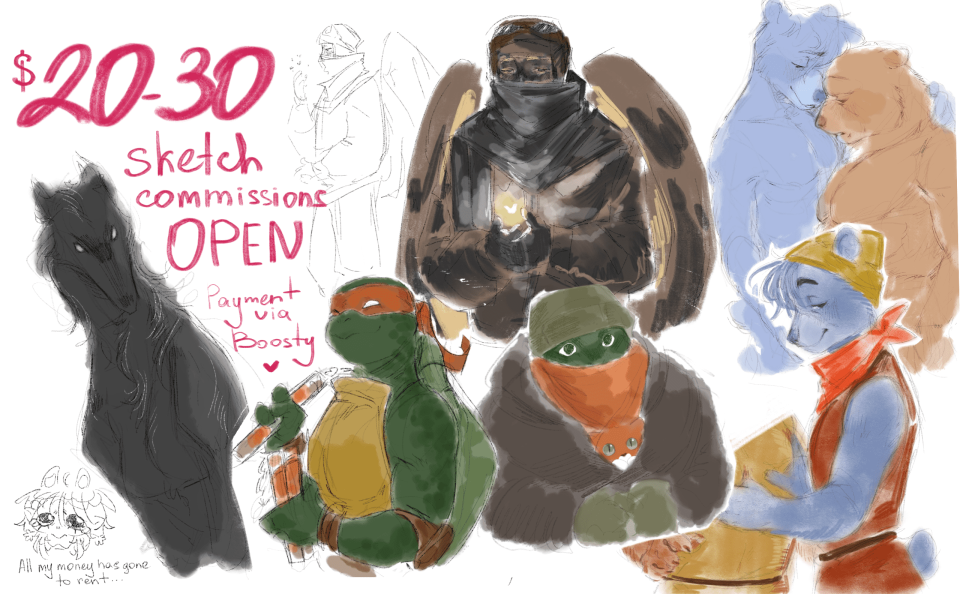 Can be any gender and any species Can be couple Can be comic sheet Deadline -- about 1 week (more, if comm is difficult or have many changes) Prefer payment via Boosty (can be also hipolink or lava.top) U can wrote me here, in Discord (stekolshek), Telegram (@glassmakerstas) or FA Notes