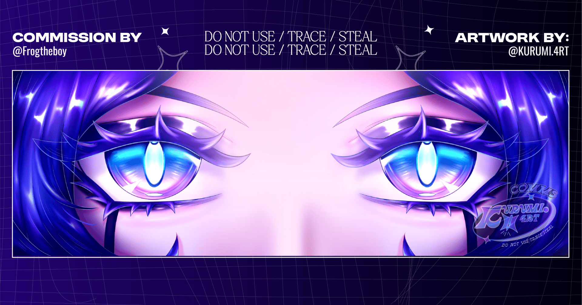 EYE BANNER / Commission ──── ⋅ ⋅ ─ ㆍ✦ 𖥔 ✦ㆍ ─ ⋅ ⋅ ──── So happy received commission on Vgen! 💙Thank youuuu (´▽`ʃ♡ƪ) MY VGEN! ┈ㆍ┈ㆍ┈ㆍ┈ㆍ┈ㆍ┈ㆍ┈ㆍ┈ Credits to: Owner of characther design: Frogtheboy -------------------------------------- Design by: Kurumi.4rt (Hehe, me 🌟) My carrd for commissions and info -> https://kurumi4rt.carrd.co/ Thank you for reading and supporting! ╰(*°▽°*)╯💖
