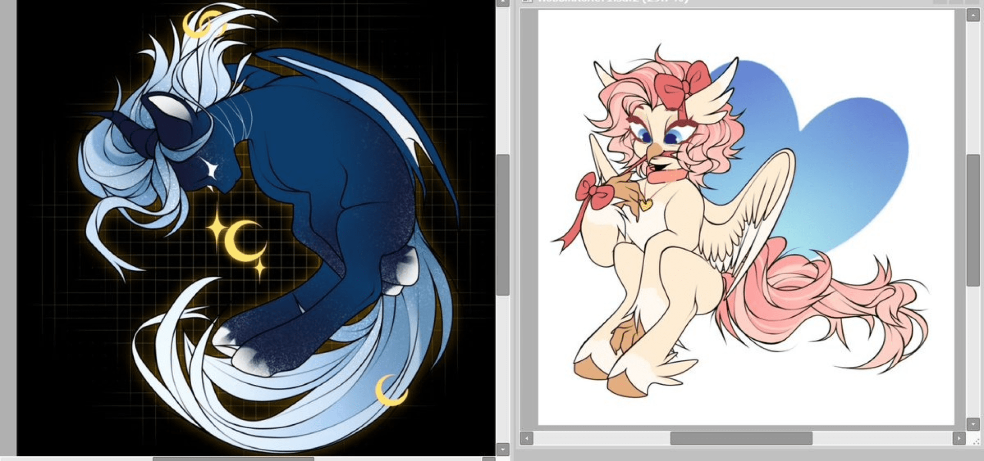 WIPs and pony example (lineart and color)